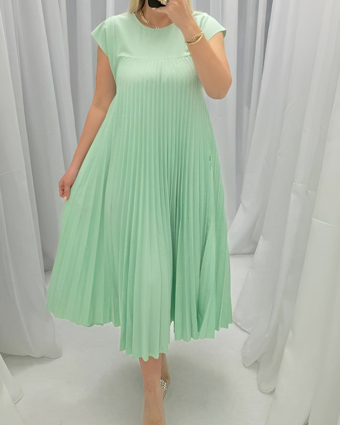 ✓ Flydende: Det plisserede stof følger elegant hvert af dine skridt.