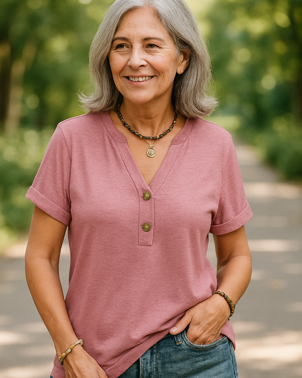 • Flatterende V-halsdesign